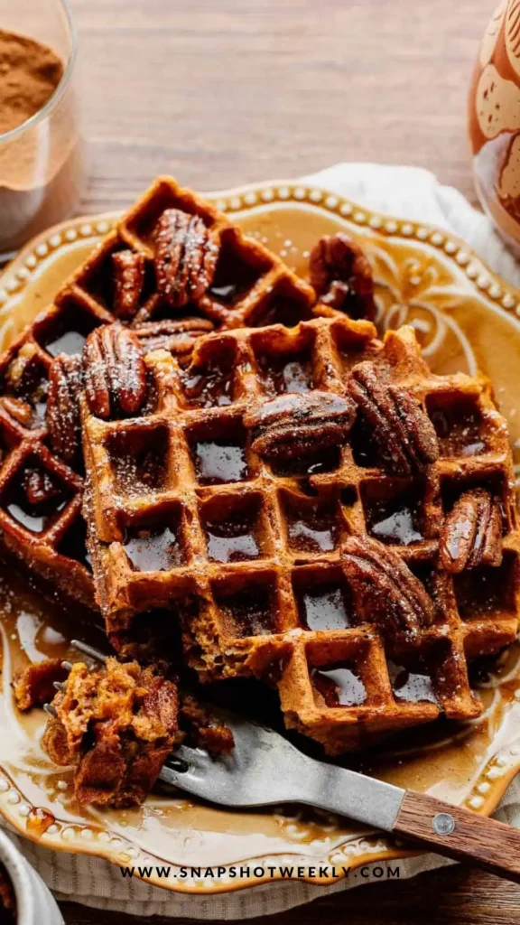 This recipe is simple enough for beginners but tastes like it came from a cozy café. We’ll whip eggs until frothy for extra-light waffles, blend in pumpkin puree for that signature flavor, and finish them off with an optional maple pecan topping that soaks into every little waffle square.