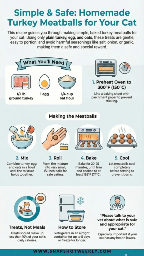 What makes this recipe special is how gentle it is. The meatballs are small, baked slowly, and easy to portion. This makes them useful as treats without replacing regular cat food.